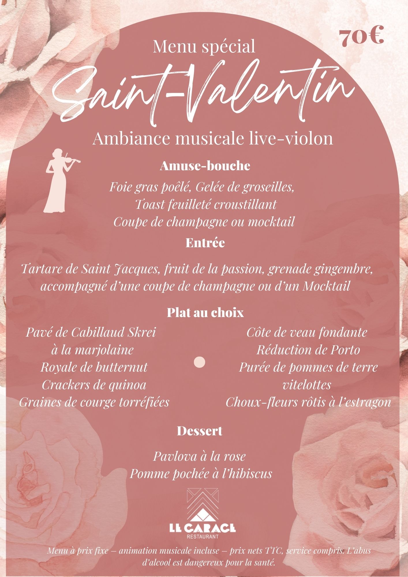 Venez célébrer la Saint-Valentin au Garage ! Laissez-vous envoûter par une soirée pleine de charme et de gourmandise, avec animation musicale. Pour cette occasion, notre cheffe Coraline Forest a imaginé un menu exclusif, alliant créativité et produits de qualité, pour ravir vos papilles et faire de cette Saint-Valentin un moment inoubliable.